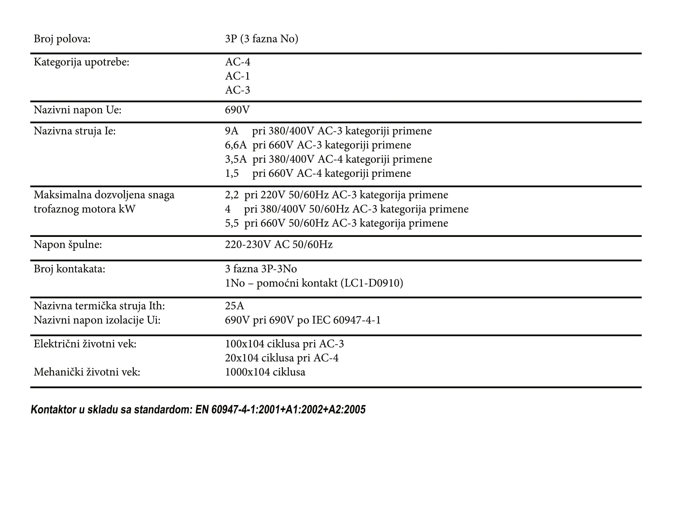 Kontaktori se koriste za rad u kolima sa čestim isljučenjima, upravljanje motorima Povezivanje: – elastični provodnici sa ili bez kablovskog nastavka – kruti provodnici Nacin montaže: – na DIN šinu – pomoću vijaka za površinu – pozicija: vertikalna sa maksimalnim nagibom do ±5°