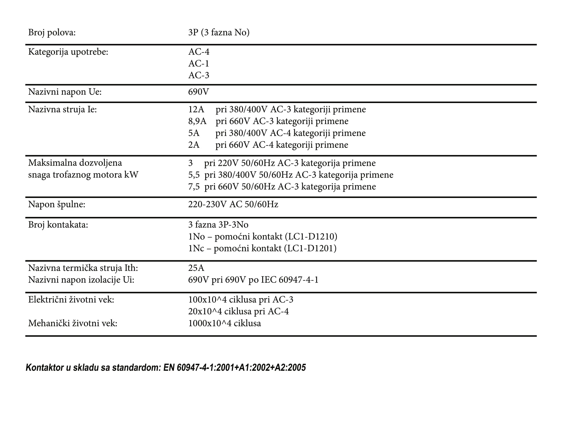 Namena: Za rad u kolima sa cestim isključenjima, upravljanje motorima Povezivanje: – elasticni provodnici sa ili bez kablovskog nastavka – kruti provodnici Nacin montaže: – na DIN šinu – pomocu vijaka za površinu – pozicija: vertikalna sa maksimalnim nagibom do ±5°